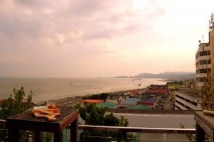 These three talks launched the BEFF 2011 on Friday 29th July. Then it was a mad dash to Nak Hotel for the film screenings which began at 7pm. The screenings were held at Balin Rooftop Restaurant and Bar, an open air area on the roof top of Nak Hotel. And what a view!! The sunset, the sea, the shop buildings and there was a huge navy ship docked at the bay about 200 meters from the BEFF venue.