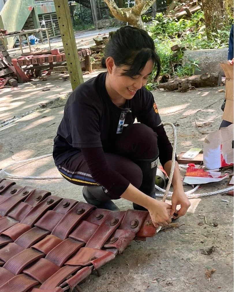 Those two weeks at BSBCC were packed with learning, hard work, and unforgettable moments. The tasks could be physically demanding, but the excitement of working with the bears made the tiredness fade away. Each day in the bear house came with a variety of duties such as cleaning cages, chopping mountains of fruit, crafting enrichment items, feeding the bears, inspecting fences, carrying out faecal checks, or even cleaning the drain underneath the bear house. We even get to make our own enrichment for our favourite bear (Mine is Kina)! The staff were warm, approachable, and always eager to share their knowledge. I especially enjoyed the moments when they introduced the bears to us, telling each one’s unique story as we worked alongside them. They were also always ready to lend a hand whenever we needed help.
